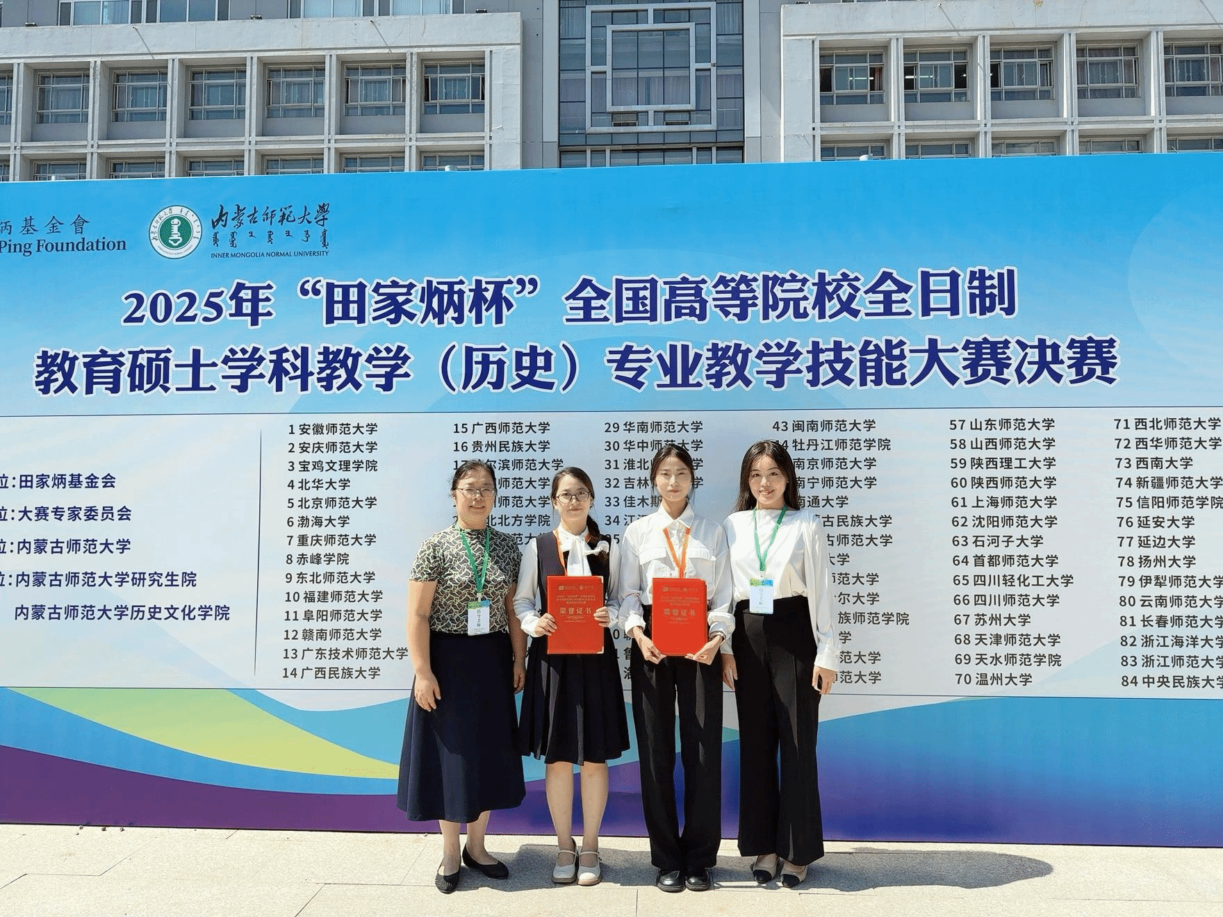 8月22-26日,2025年全国“田家炳杯”全日制教育硕士专业学位研究生学科教学(历史)专业教学技能大赛在内蒙古师范大学圆满落下帷幕。