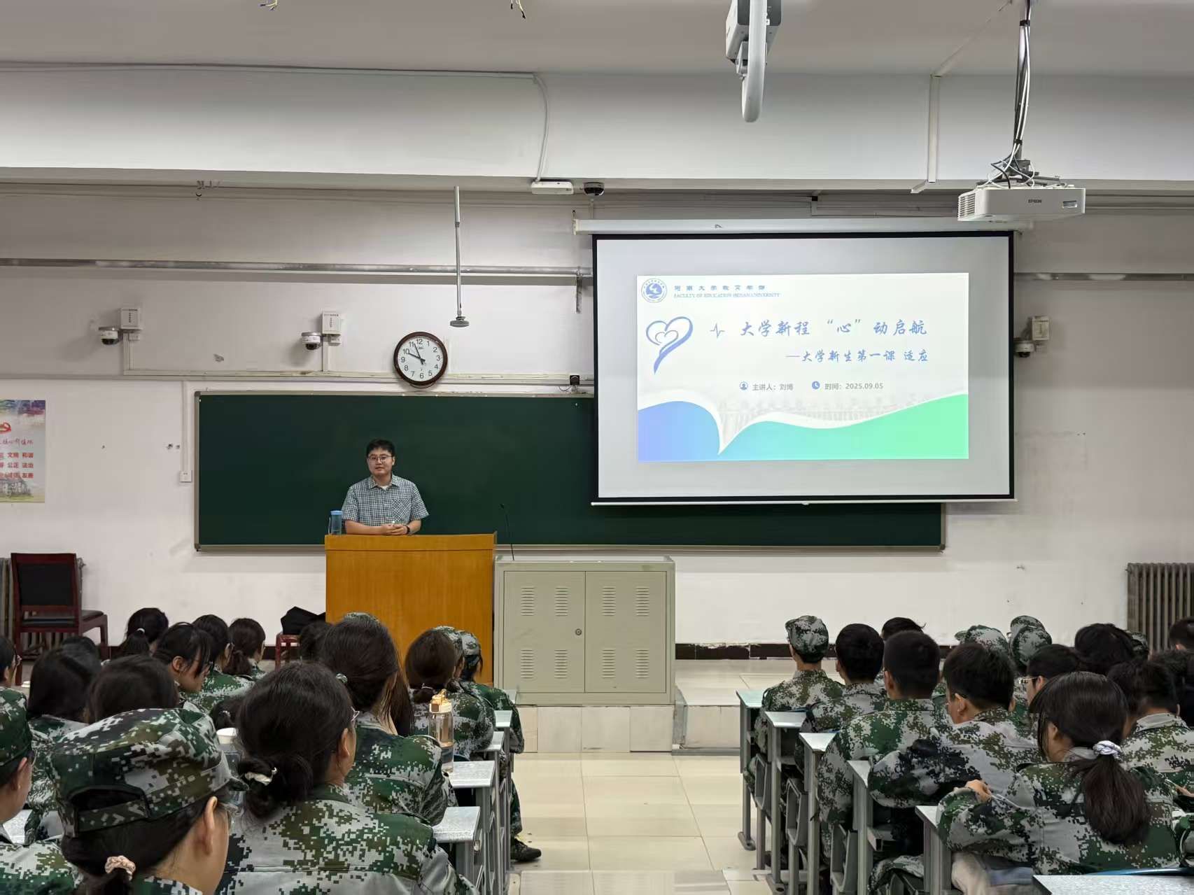 邀请河南大学教育学部刘博老师为新生开展“大学新程‘心’动启航”心理健康主题报告。结合大学新生常见的心理适应问题,刘博讲解了情绪管理、压力应对、人际交往以及自我认知等多方面内容,引导同学们关注自身心理健康,掌握心理调适的基本方法,有效增强了新生的心理韧性与适应能力。