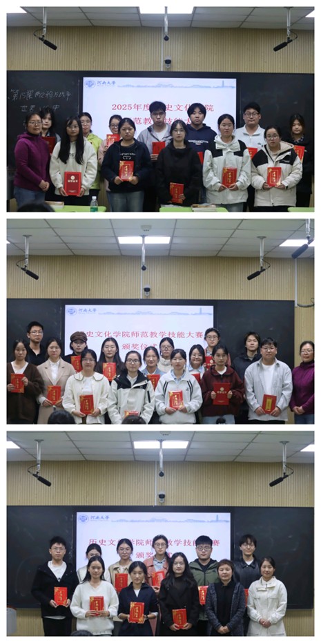 评委史艳艳围绕“教学设计完整性”与“现场授课表现力”两大核心维度,对全体参赛选手展开了深入的专业点评。她从中学教师角度出发,凭借多年实战经验,指导各位参赛选手注重粉笔字练习,搭建课程骨架,梳理清晰逻辑体系,明确教学目标。最后,史艳艳老师对全体选手寄予殷切期望,希望他们能将点评中的问题逐一拆解、认真复盘总结,在持续的实践与反思中提升自我。本次大赛最终评定出一等奖10名、二等奖16名、三等奖14名,评委老师现场为获奖选手颁奖。