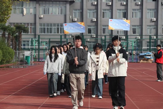 在激昂的乐声中,各班方阵精神抖擞、步伐铿锵,尽显学子们朝气蓬勃、奋发向上的精神风貌。入场式既是一场精彩的视觉盛宴,更是一次响亮的青春宣誓——它将昂扬向上、奋发拼搏的体育精神洒满赛场,为运动会的顺利开启奠定坚实基础。