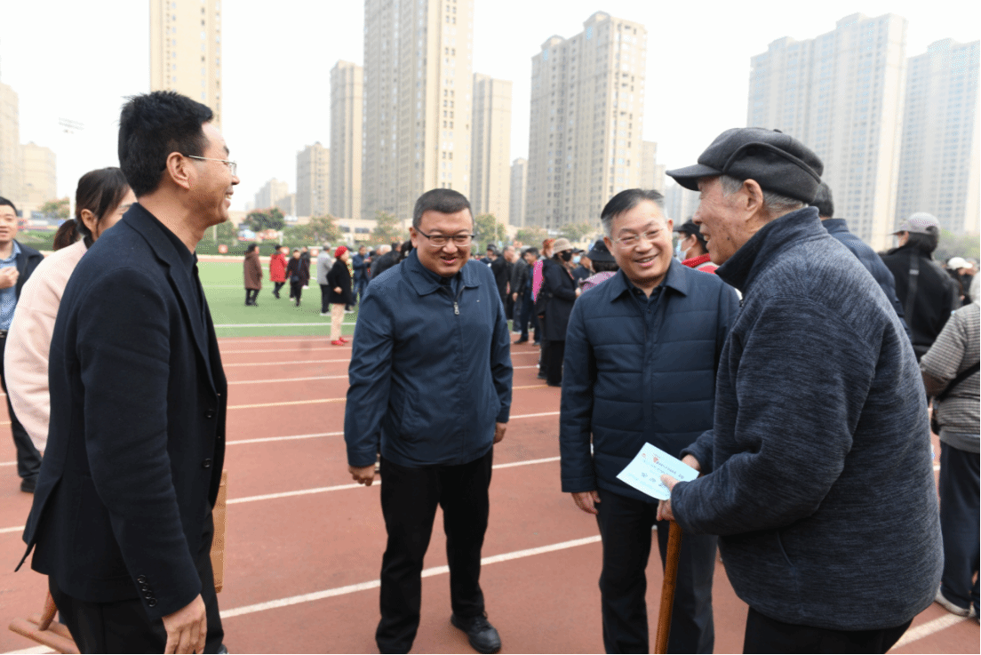 退休教师魏千志亲切握手并热情关心其身体和生活状况,真正把敬老爱老落实在行动上,传递出学校的民生温度。