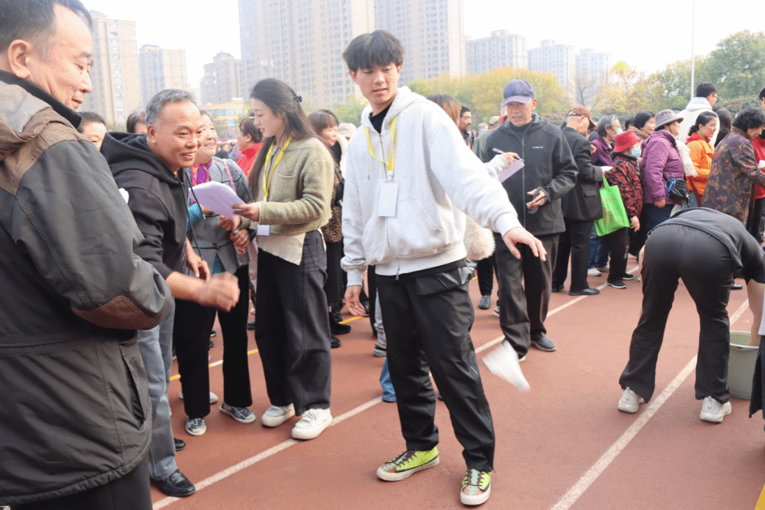 离退休教职工积极参加保龄足球,投掷羽毛球等项目,充分展现我校全民健身计划的成果。比赛的同时,学生志愿者们也在运动场上穿梭,为银龄健儿们提供无微不至的照顾,在与老教师们的互动中聆听河大故事,传递河大精神。