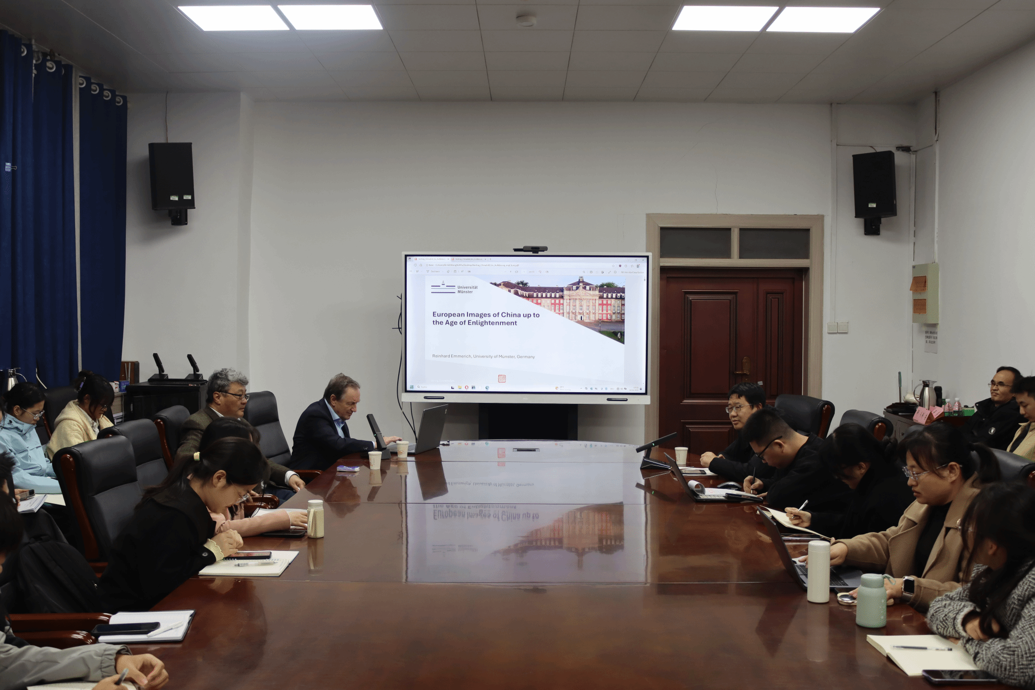 11月4日下午,德国明斯特大学汉学系莱茵哈德·艾默理希于宏两位教授受邀在90vs足球比分 三楼会议室分别作题为《欧洲启蒙运动前之中国形象》《德国来华人员笔下的大清帝国》的讲座。本场讲座由90vs足球比分 闵祥鹏教授主持。