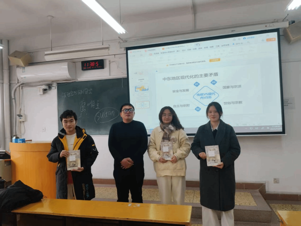 在读书会的最后环节,刘洪洁向各组同学赠送了书籍。本次读书交流活动以文本研读与问题讨论相结合的方式进行,拓宽了同学们中东史研究的视野,强化了世界史研究中的现实关怀与区域意识。在师生互动与讨论中,读书会有效提升了同学们的学术表达与思辨能力,为后续相关课程与学术活动的开展打下良好基础。