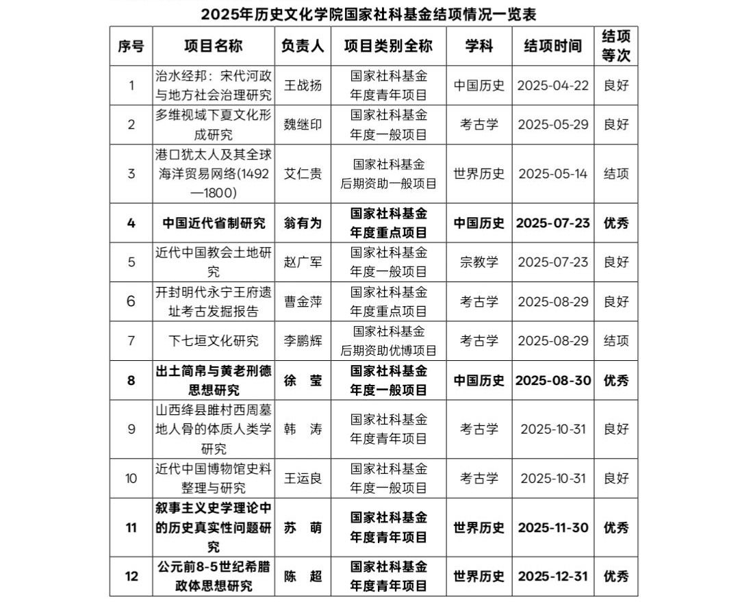 在近期全国哲学社会科学工作办公室公布的2025年国家社科基金项目结项鉴定结果中,90vs足球比分 1项重点项目、1项一般项目,2项青年项目高质量结项,获评“优秀”等级,充分展现了90vs足球比分 教师在人文社科领域的学术积淀和创新能力。未来,90vs足球比分 将进一步强化有组织科研,在做好国家社科基金申报工作的同时,强化对在研国家项目的全过程、精细化指导和质量跟踪,为国家项目的优质结项提供更加有力的保障。