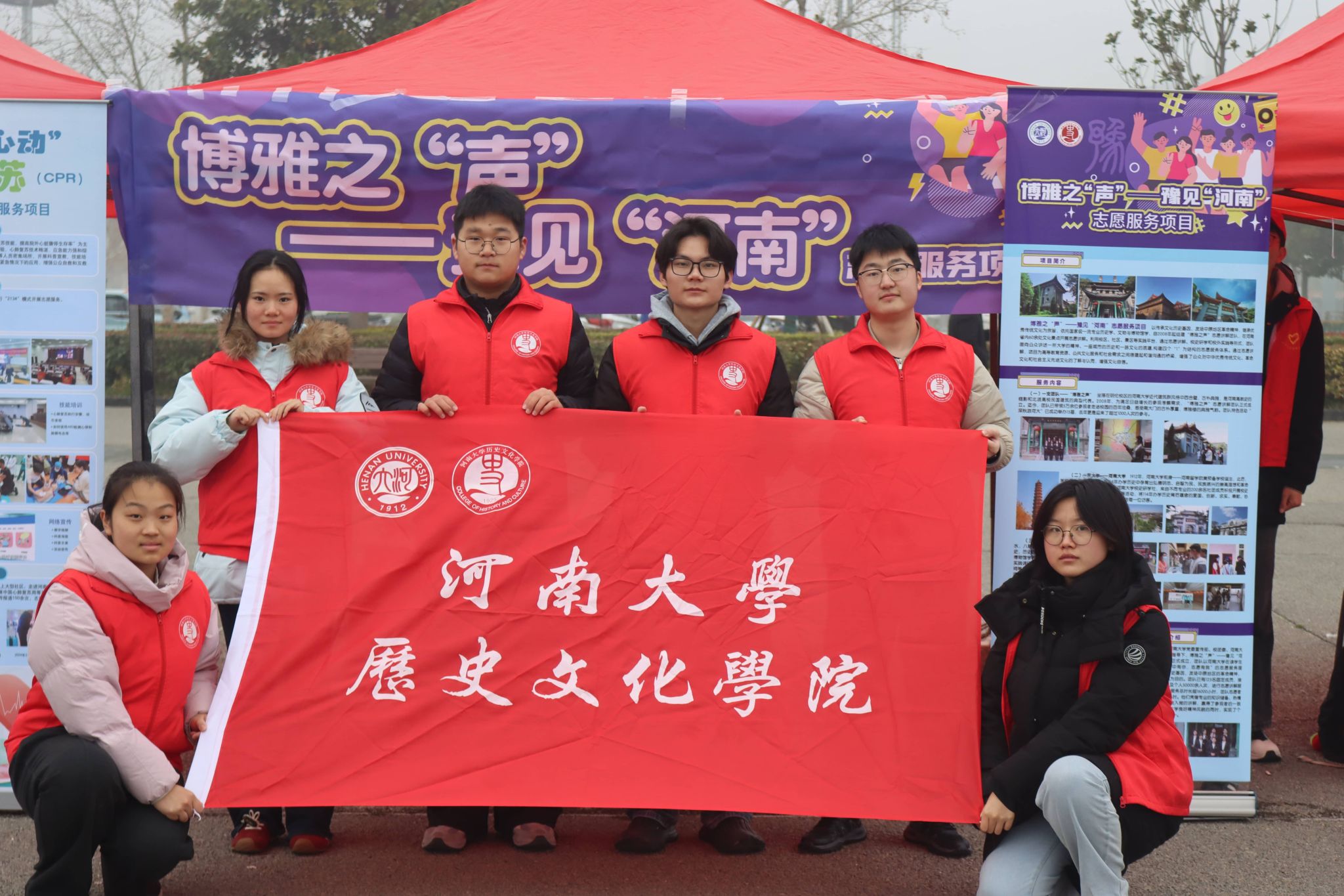 “博雅之‘声’——豫见‘河南’”志愿服务项目依托国家级一流专业历史学、文物与博物馆学的学科优势,自2008年起组建志愿讲解团队,深耕文化传承。项目以传承文化历史基因、发扬中原地区革命精神、继承优秀传统文化为宗旨,构建起四个“1”为结构的志愿服务体系,在河南省内60余处文化景点开展志愿讲解服务,为高等教育资源、公共文化服务和社会需求之间搭建起和谐沟通的桥梁。