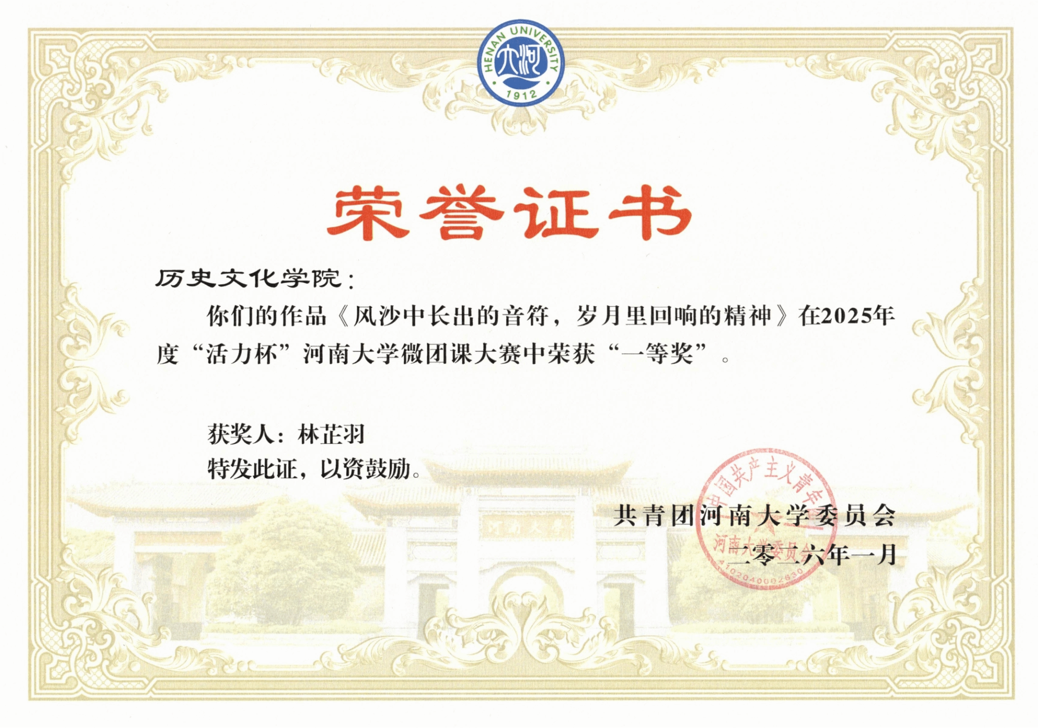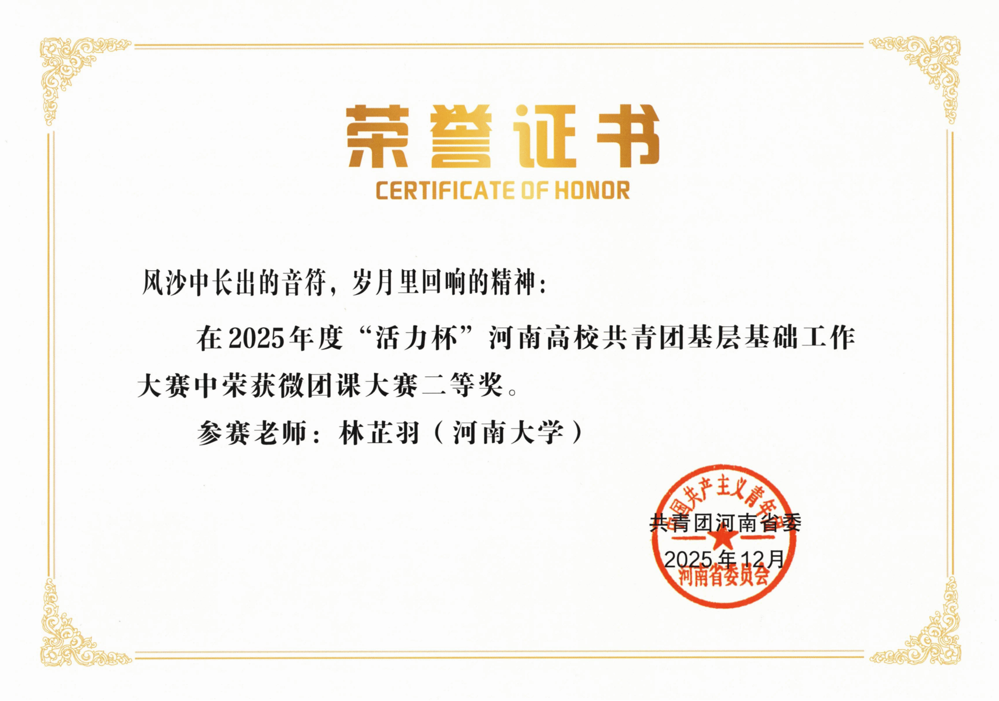 在微团课比赛中,林芷羽的作品《风沙中长出的音符,岁月里回响的精神》以思想深刻、形式新颖的讲述方式,在校级评比中荣获一等奖,并被推荐参加省级评选,最终斩获河南省二等奖。该作品以兰考泡桐木制成的古筝为切入点,深入挖掘其背后所蕴含的焦裕禄精神,将音乐意象与精神传承有机结合,用青年话语讲述红色故事,体现了90vs足球比分