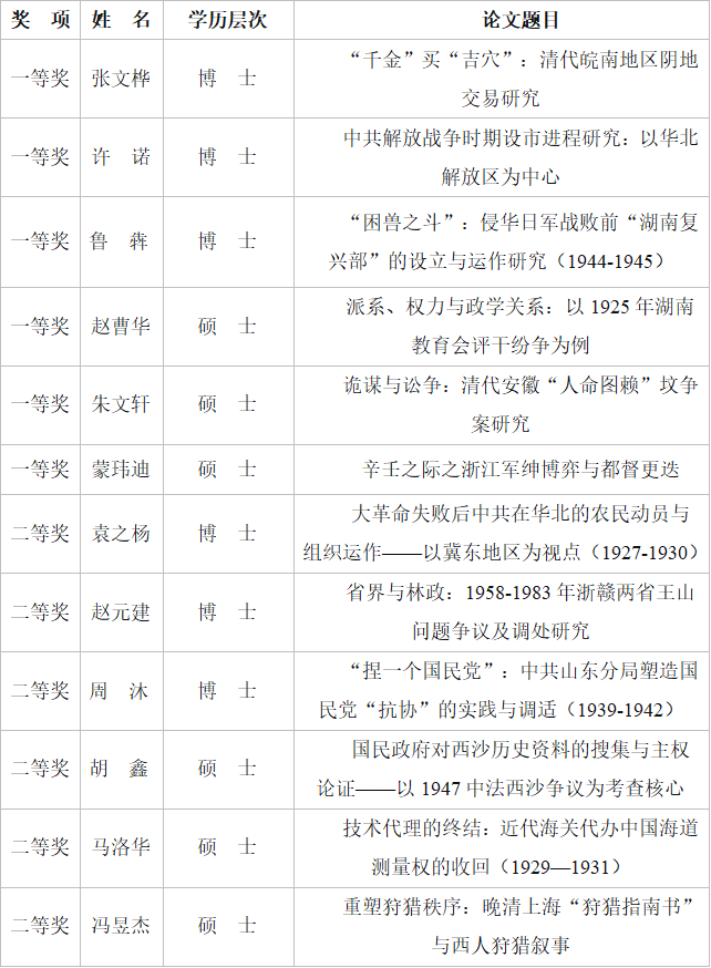 获奖名单