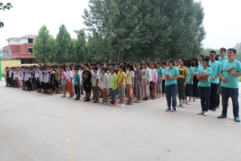 7月12日,伴随着冉冉升起的朝阳,在官厂镇一中的操场举行暑期支教夏令营的开营仪式。官厂镇一中部分领导老师、爱心支教团全体队员以及300余名学生参加开营仪式。