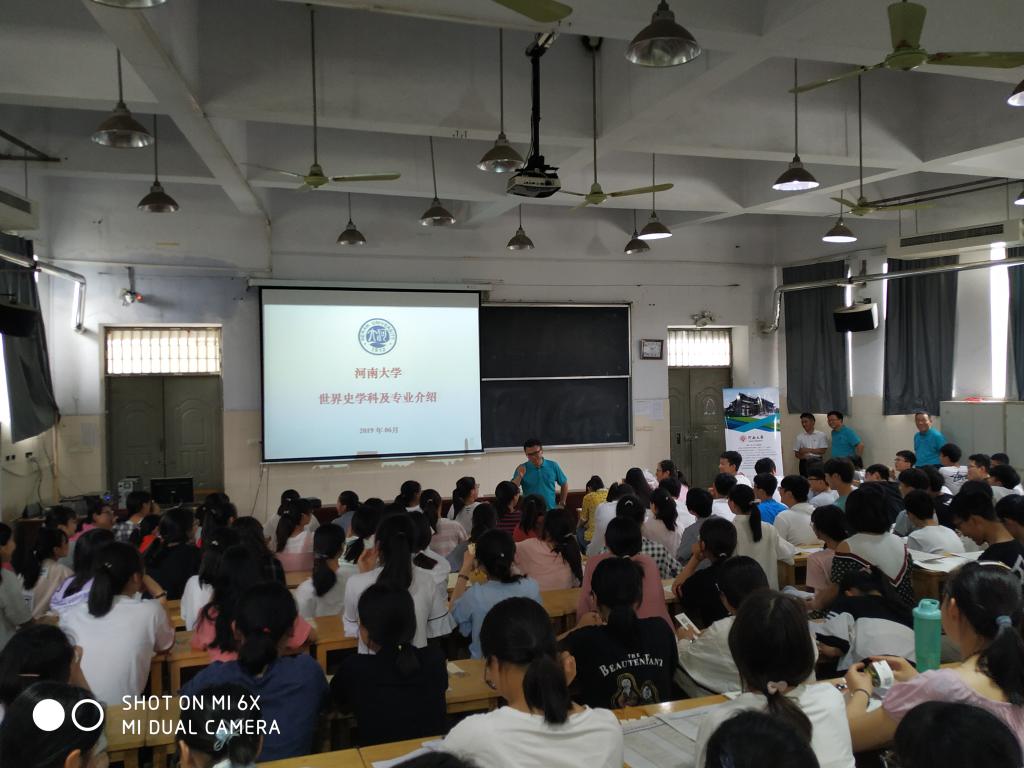 党委副书记姜捷,中国古代史研究中心执行主任田志光、世界史党支部书记李恒、考古文博系主任魏继印、资料室主任邱胜利、团委负责人郑振亚等一行6人组成的招生宣传工作组赴平顶山市鲁山、宝丰等县开展招生宣传活动。在校友的大力支持下,宣传活动取得了良好宣传效果。