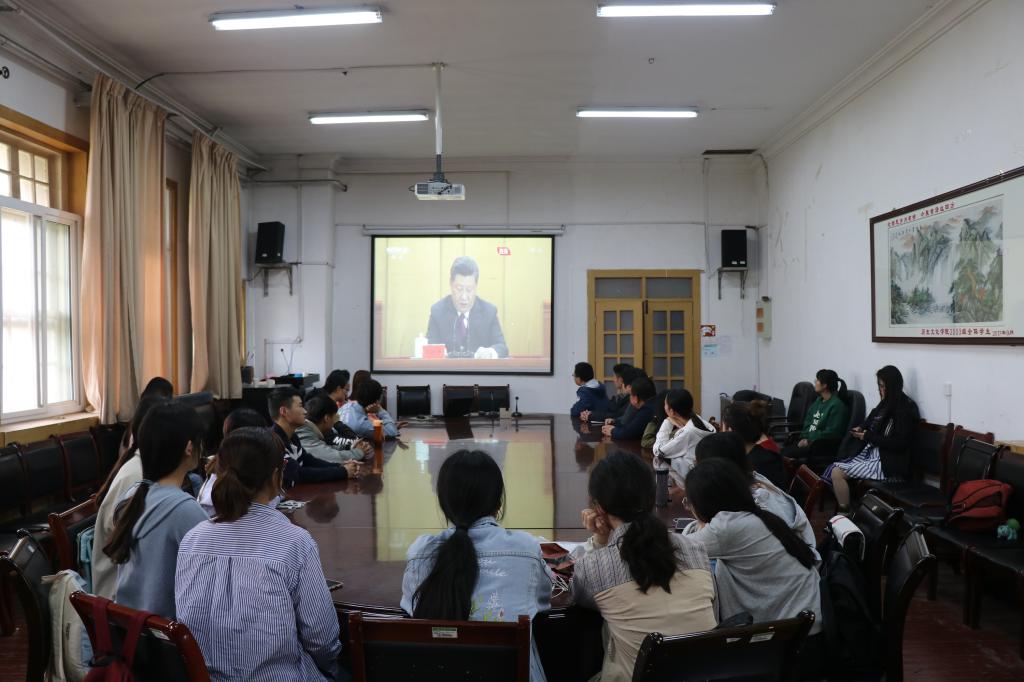 师生认真学习习近平总书记讲话,总书记的深情寄语让在座师生受到极大鼓舞,同时通过对五四运动精神的深刻理解,更加清楚地认识到新时代背景下自身的责任与义务。