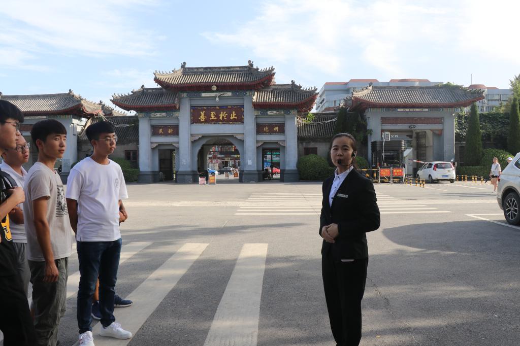 集合后,分为两队,分别由两位校园导游带领,依次参观明伦校区近代建筑群及校史馆。讲解从南大门开始,校园导游为新生介绍南大门的建成历史及形制特色、建筑风格等,使他们更加了解南大门所承载的内涵及深义。此外,还详细介绍了河南大学“明德,新民,止于至善”的校训,道出河南大学发扬光明德性,革新民心,达到完善的办校原则。