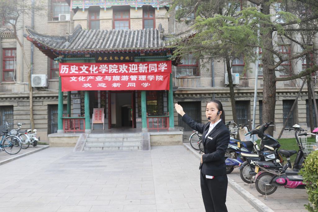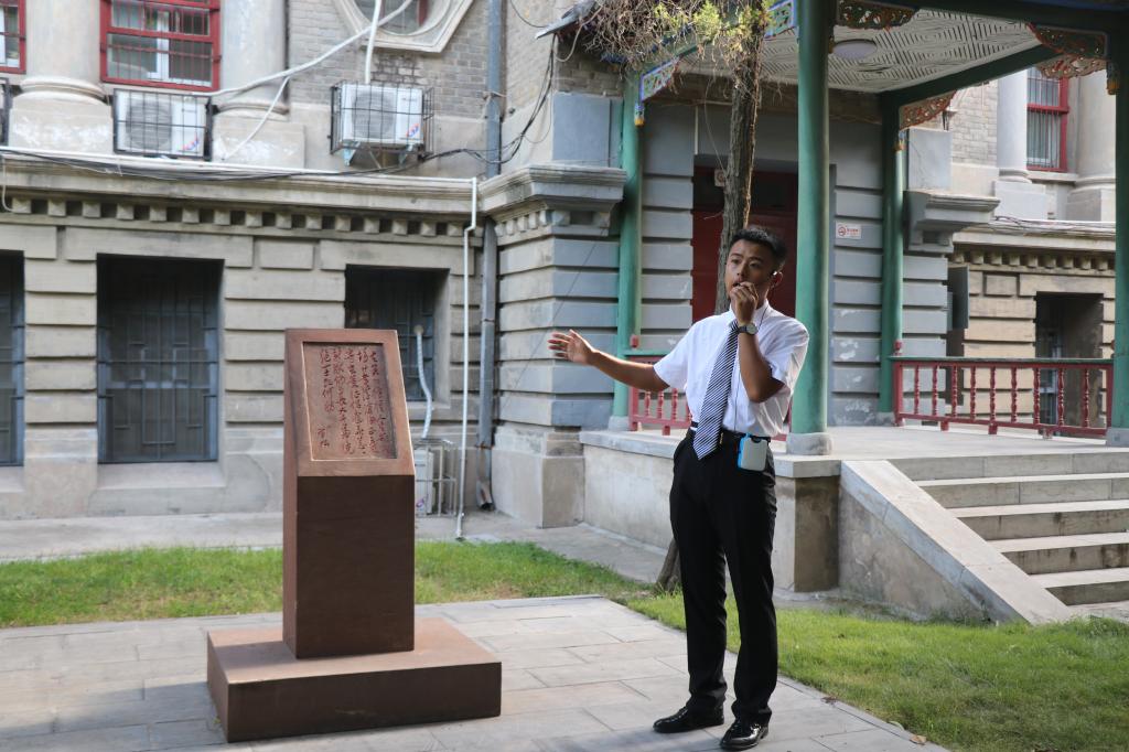 抵达七号楼时,古朴典雅的建筑风格令大家驻足欣赏,校园导游为新生介绍了七号楼“中西合璧”的独特建筑风格及中式建筑手法,还为新生讲解了七号楼“公主楼”名称的由来。在大礼堂前,介绍了大礼堂的建筑历史及内部结构,让新生进一步了解河南大学标志性建筑物的内部结构原理及建筑风格。