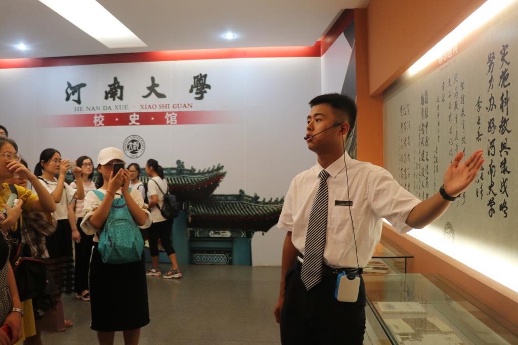 进入校史馆后,校园导游带领新生回顾河南大学艰辛的办校历程,从回眸曾经办校的艰苦历程,到放眼于如今河南大学的双一流建设的发展现状,使新生们更深入地了解河南大学校情校史,增强了对学校的归属感和凝聚力。