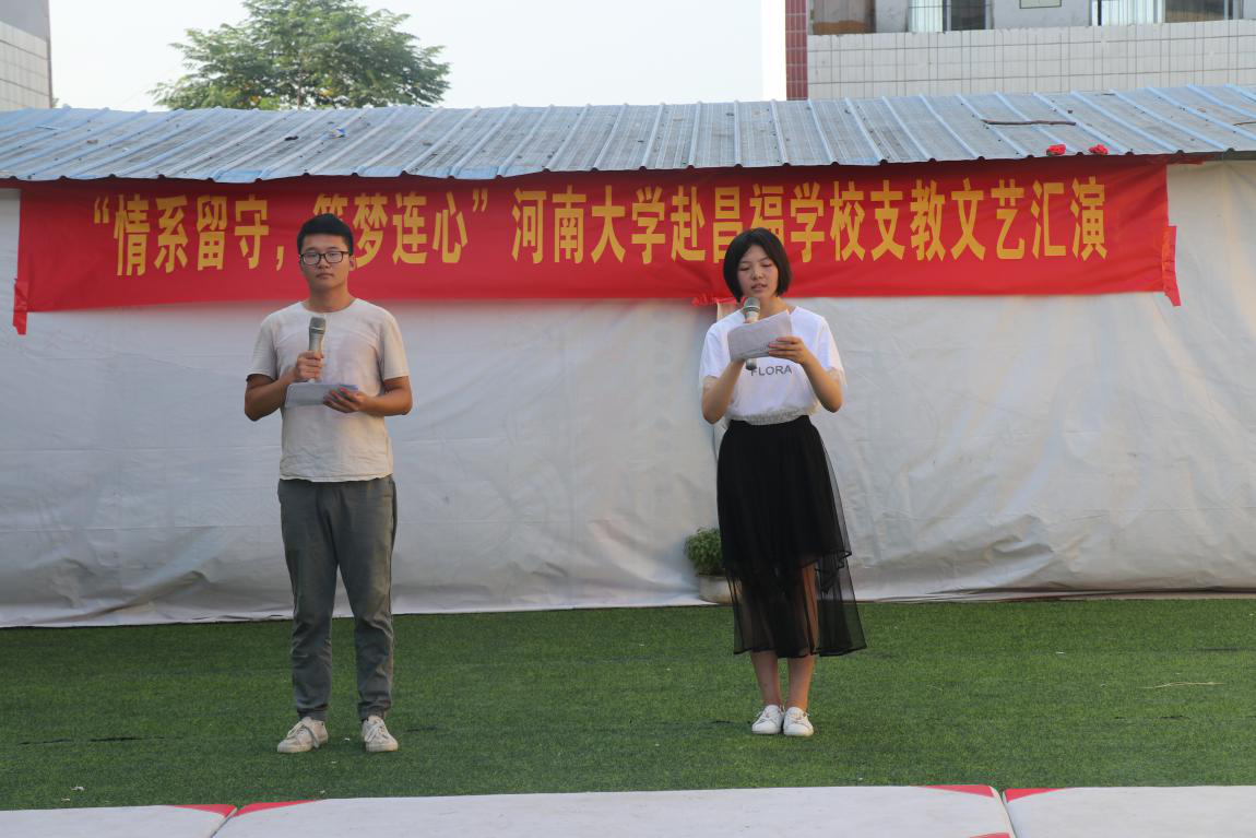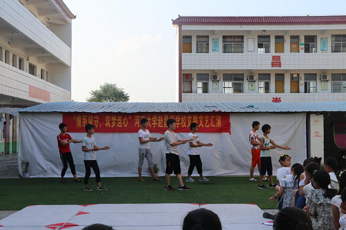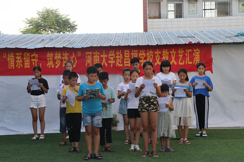 项城昌福学校15天的支教活动已到尾声,在这15天里,爱心支教团教导孩子们的文化课与特长课都取得了显著成效。为展示孩子们多天的教学成果,7月24日下午,昌福学校举行了“情系留守,筑梦连心”河南大学赴昌福学校支教文艺汇演。