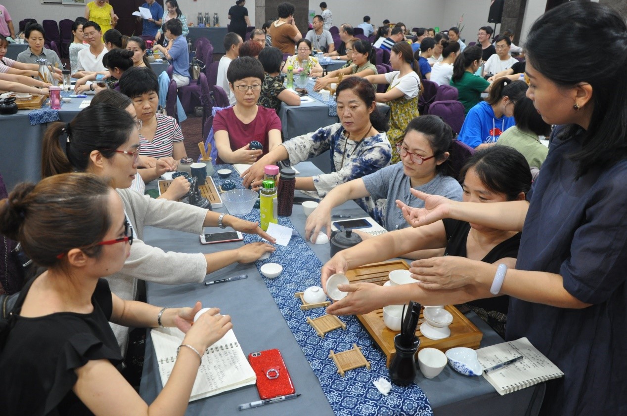 7月7日上午,随着旅游平台模块课程的圆满结束,我校”双师“培训班的学员们迎来了期待已久的茶文化课程。在此次的课程中,不仅有国家茶艺技师现场教学,还包括了技能实操和岗位培训,让学员们在专业的学习与指导下,学会赏茶、泡茶、品茶,深度地去了解茶文化和我国茶精神。