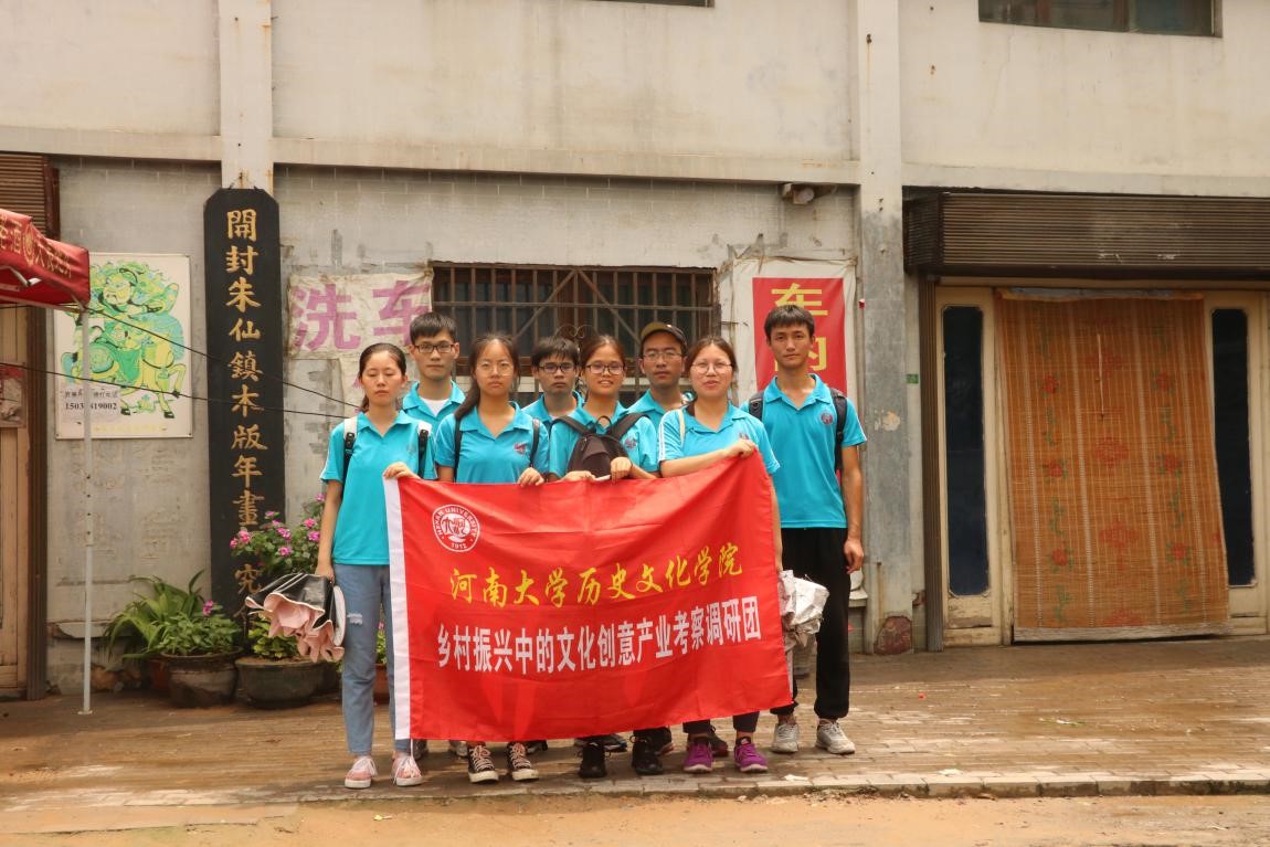 “乡村振兴中的文化创意产业考察调研团”的同学来到中国历史四大名镇之一的朱仙镇,对朱仙镇的公共文化设施建设的情况以及木板年画的保护和开发现状做专项考察。