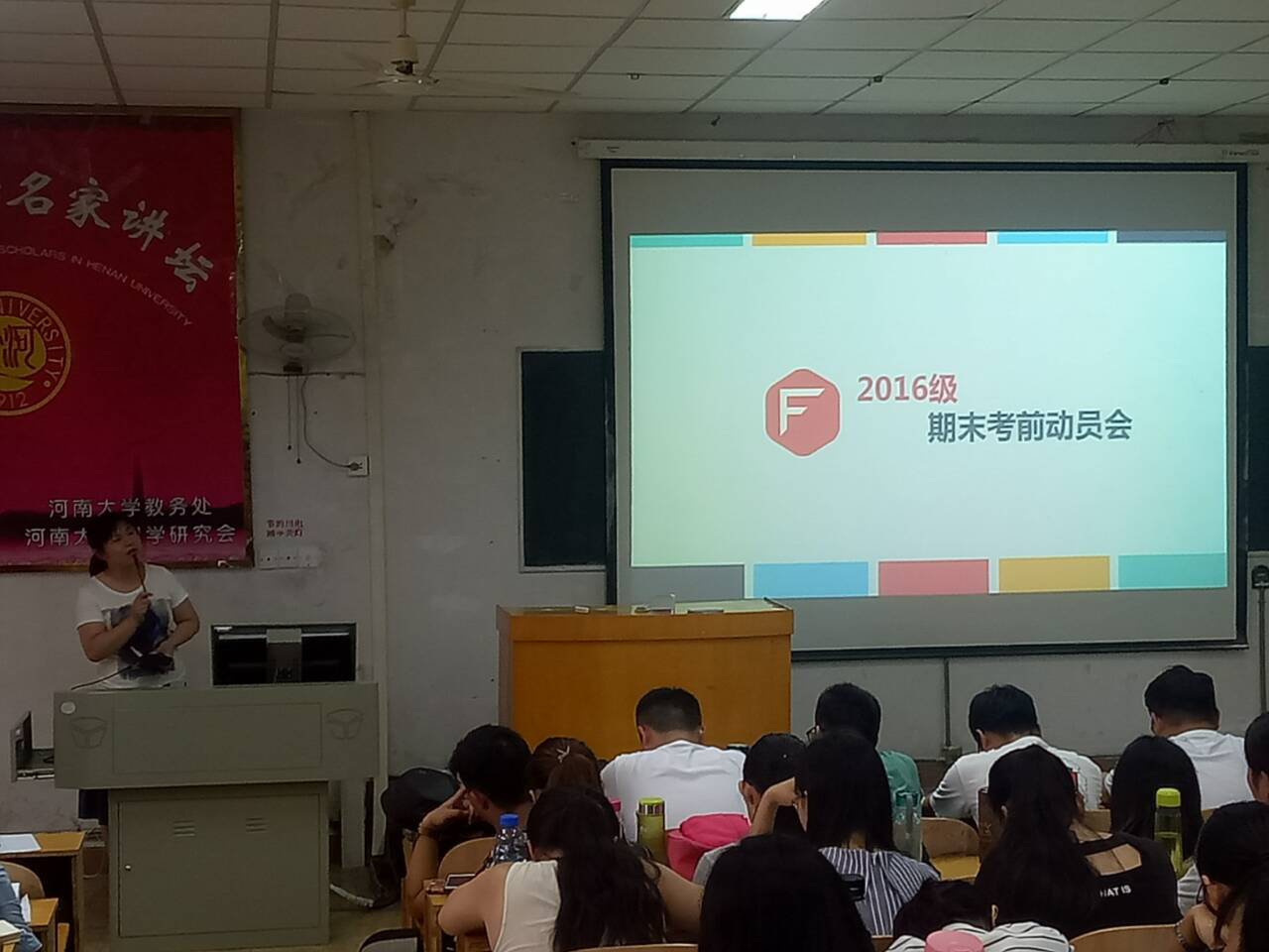 本科2016级全体学生在明伦校区综合楼209教室开展期末考前动员会。2016级辅导员鞠萍出席。会议由2016级副年级长何凌峰主持。