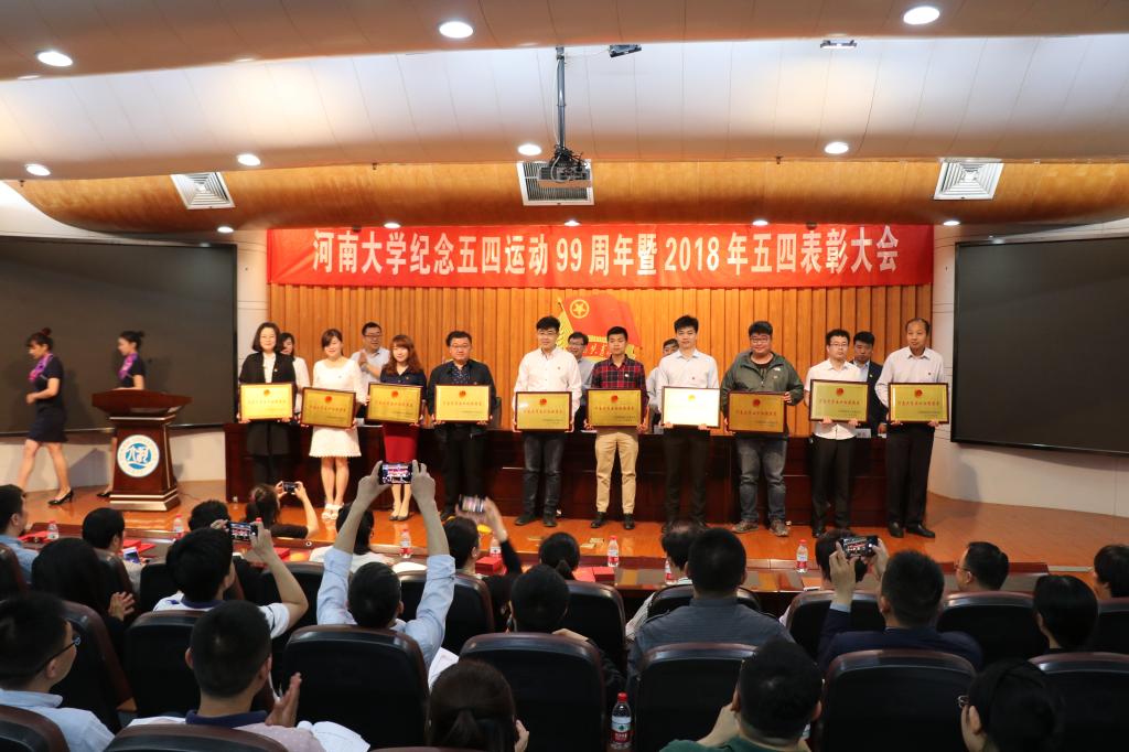 团委荣获河南大学2017年度“五四红旗团委”;段冰老师荣获2017年“河南大学青年五四奖章”提名奖;谢宇飞老师荣获河南大学2017年度“青年志愿服务工作先进个人”、2017年度“河南大学青年岗位标兵”;张倩、董世康等24位同学荣获河南大学2017年度“优秀共青团员”;梁开、李葭萌等10名同学荣获河南大学2017年度“优秀共青团干部”;本科2015级文化产业管理班团支部等五个团支部荣获2017年度“河南大学五四红旗团支部”;本科2017级历史学类一班团支部等两个团支部荣获河南大学2018年“风展团旗”最佳团日活动竞赛优胜团支部。