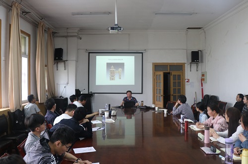 韩长松首先介绍了焦作的地理概况和历史变迁,并结合“楼”和“仓”的概念对“陶仓楼”这一名字的由来做了阐释。随后,他对陶仓楼的研究概况进行了梳理。他介绍到陶仓楼主要分为楼院式陶仓楼、连阁式陶仓楼、联仓式陶仓楼和简式陶仓楼,后期出现模拟式陶仓楼。韩长松指出,陶仓楼的发现主要集中在中原地区,焦作是我国出土陶仓楼数量最多的地区,具有地域集中、类型多样、时间连续的特点。焦作陶仓楼的发现反映了两汉期间汉山阳县的社会经济发展状况和建筑面貌,也反映了汉代的建筑技术和装饰技术,具有重要的史学价值。最后,韩所长表示,文物是对各个历史时期自然与人文情况的反映,希望同学们能够从文物中挖掘出有效信息,并将其运用到历史研究中。