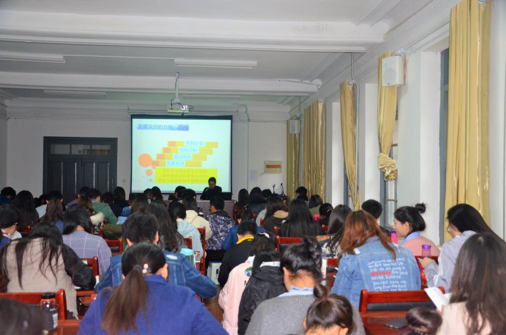 入党积极分子和学生骨干讲授题为《严格组织程序,规范党员发展》的专题党课。