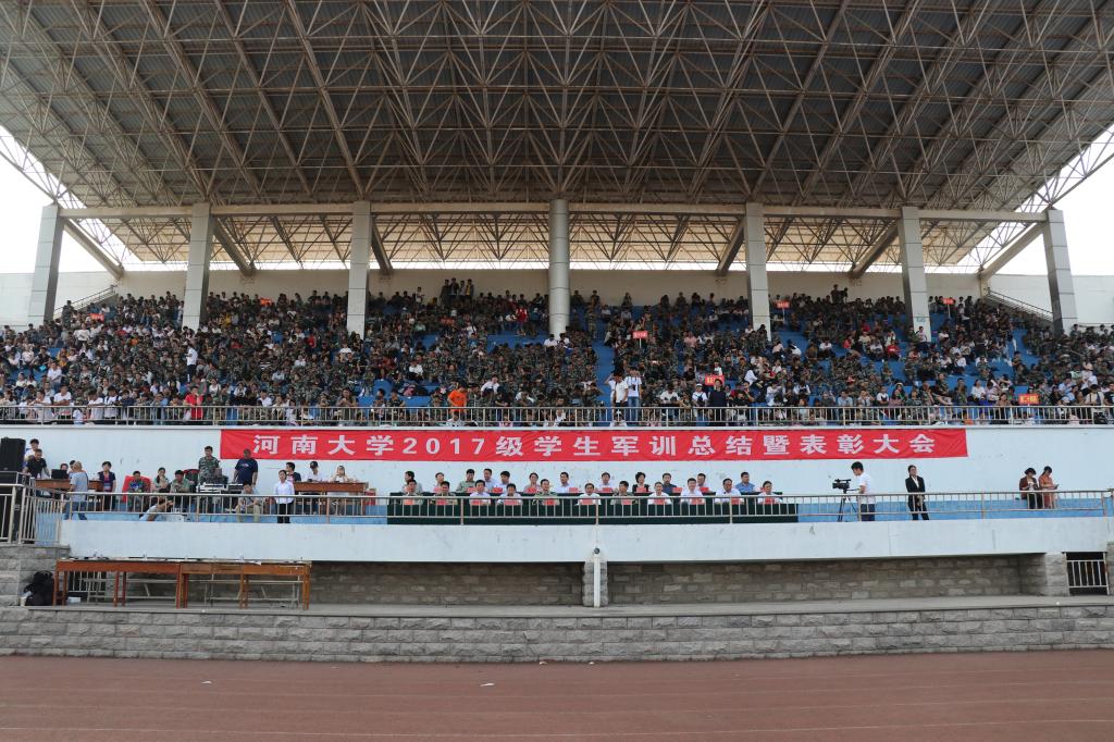 9月17日下午,河南大学2017级新生军训总结暨表彰大会在金明校区志义体育场隆重举行。河南大学校长宋纯鹏,党委副书记雷霆,副校长张宝明、刘先省、许绍康、孙君健,中国人民解放军32150部队副政委甄忠信上校、开封市军分区副司令员崔瑜大校等部队首长、军训领导组成员及学校有关职能部门负责人出席大会。大会由副校长孙君健教授主持。