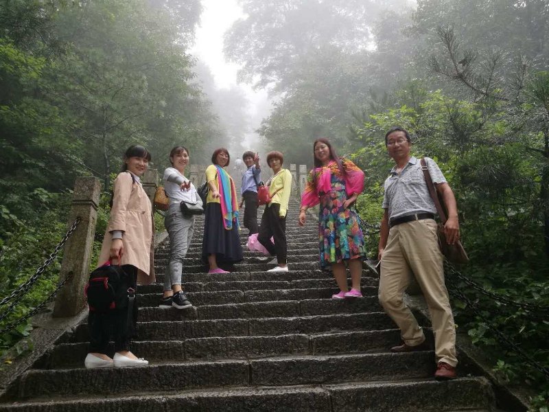 蒙蒙细雨,如烟如雾。蜿蜒的山道上,学员们兴致勃勃,“游云景天路、观十里画屏、悟天界五宫,领略缩小了的仙境,放大了的盆景的峰林精品景区,体验金顶道观群的道韵。”缭绕的云雾、万壑的群山、目不暇接的石林、恢弘壮丽的楼阁,一路走来,让人赞叹、让人流连。