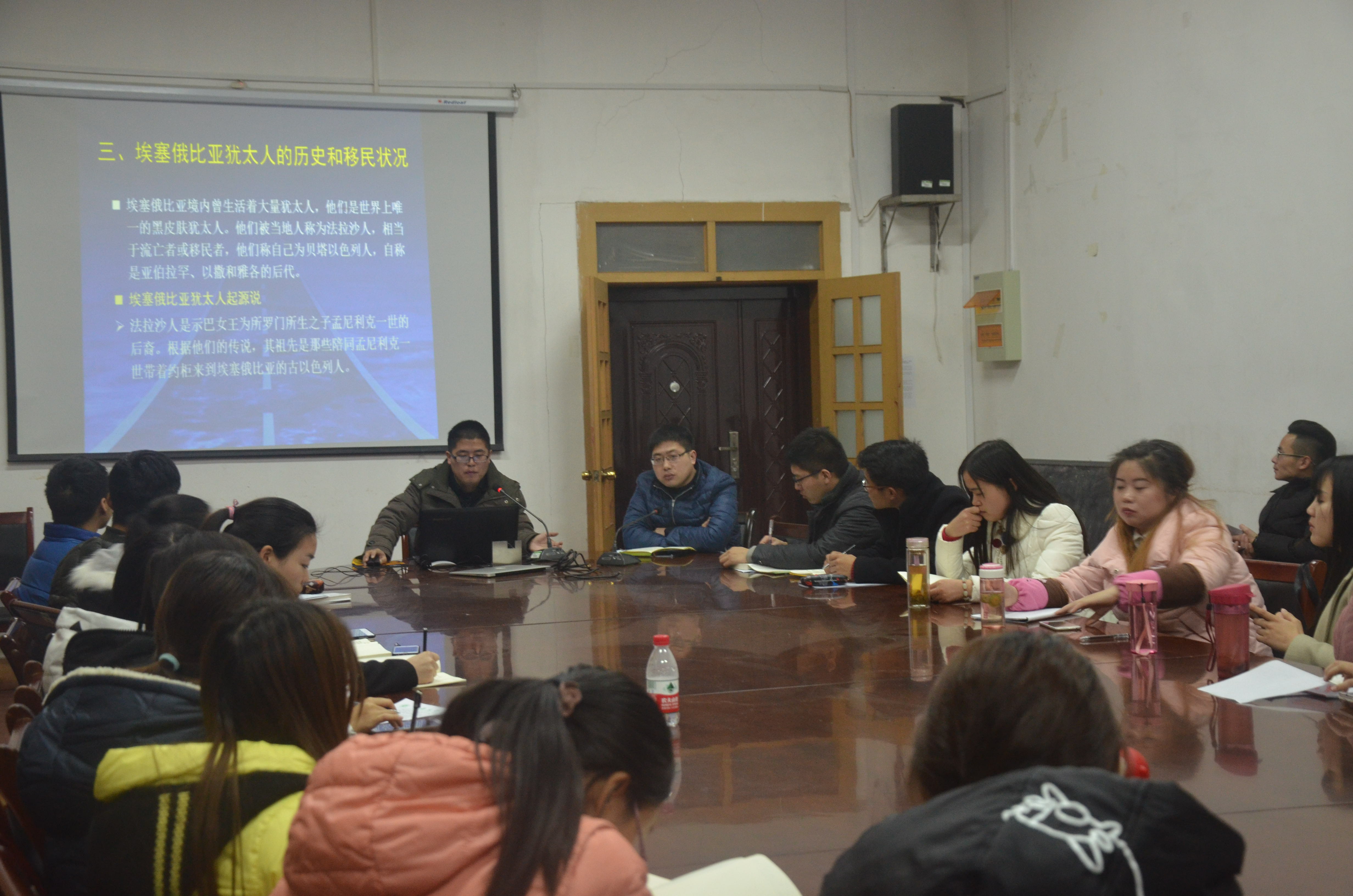 三楼会议室如期举行。世界史系主任胡浩老师担任主讲,卢镇老师主持。