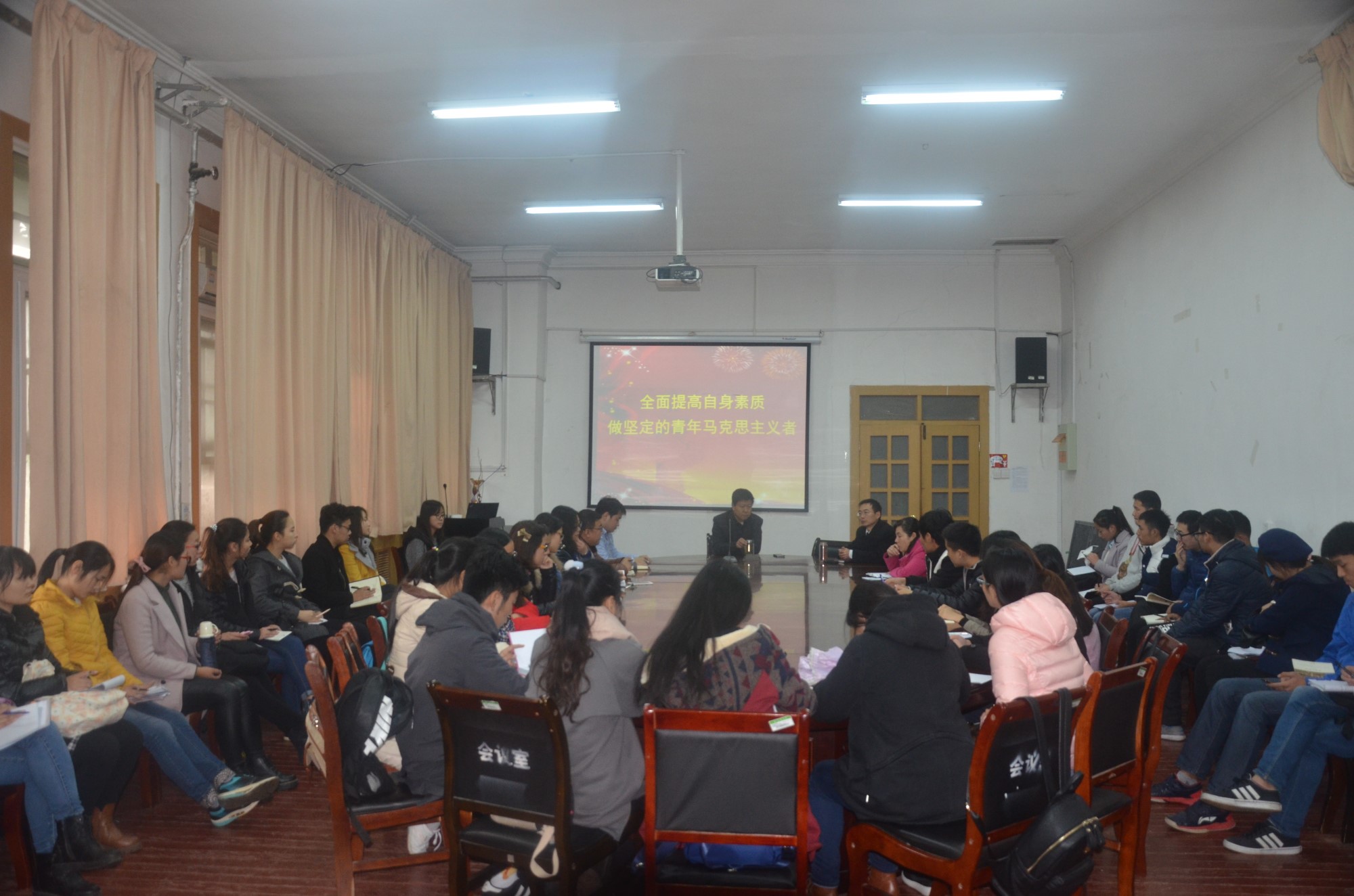 入党积极分子做《全面提高自身素质,做坚定的青年马克思主义者》的专题讲座,他指出学生不仅基本素质要过硬,综合能力也要提升,不仅为人处世方面要光明磊落,而且要扩展心胸、开阔眼界,更要加强理论学习、提高思想政治素质。他强调入党积极分子应坚定政治信念,多看党章,勤于反思,时刻以党员标准严格要求自己。