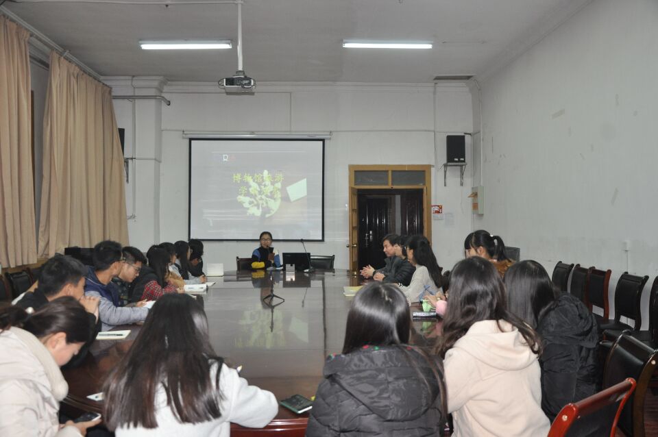 三楼会议室举行,博物馆学王运良老师、旅游管理王伟红和肖建勇老师出席了本次活动,由15级旅游管理的沈联衢主持,14级旅游管理的张鹏、王小倩、周天霞三位同学做了发言。