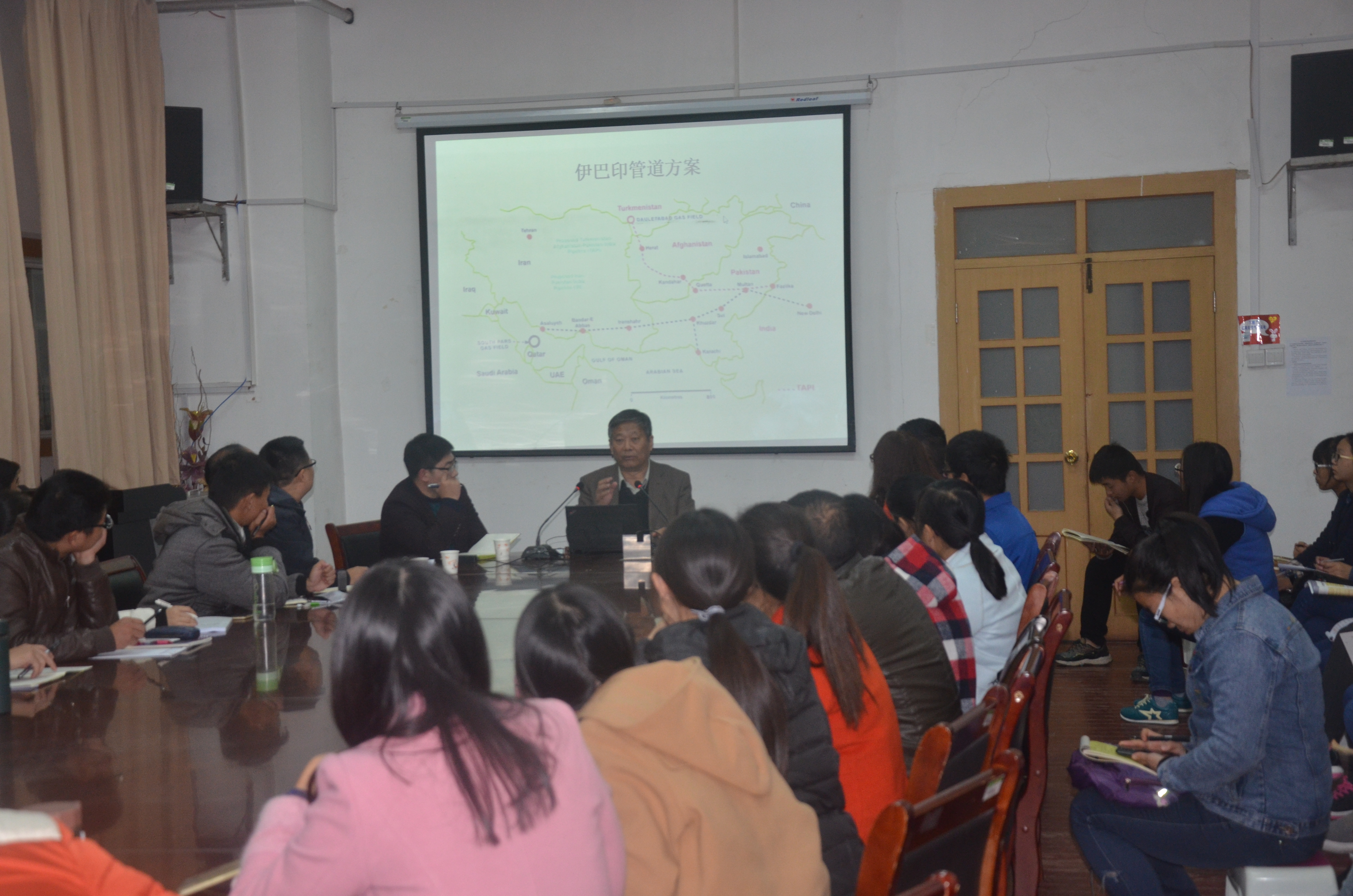 三楼会议室为广大师生带来题为《“一带一路”建设与中东》的专题讲座。讲座由世界史系主任胡浩老师主持。现场座无虚席,气氛热烈。