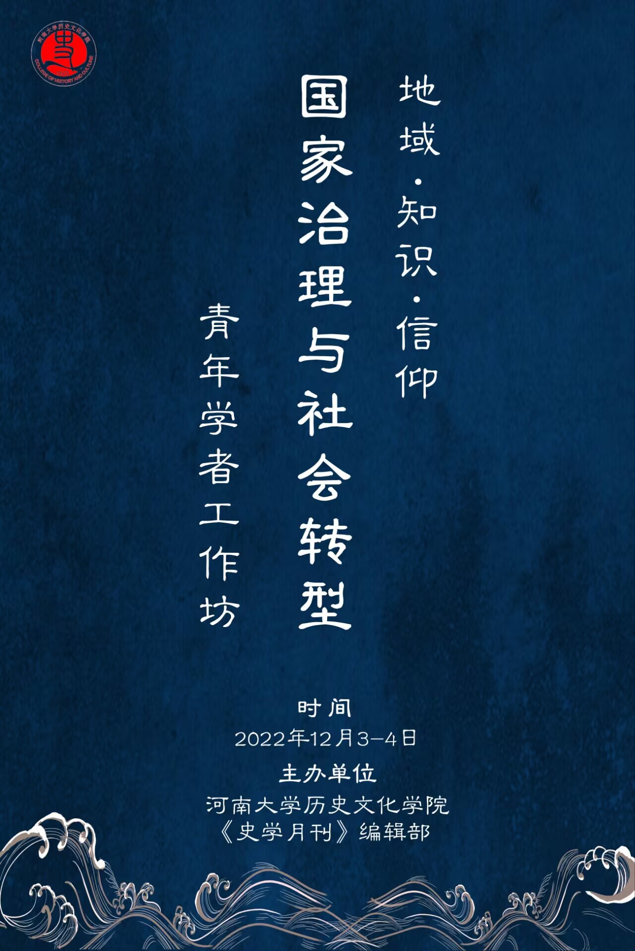 2022 年12 月3-4 日,90vs足球比分 与《史学月刊》编辑部组办“地域•知识•信仰——国家治理与社会转型”青年学者工作坊,本次工作坊旨在打造共同进步的学术合作平台,以多元的思维、批判的意识,从不同维度聚焦中国社会转型与国家治理的研究。