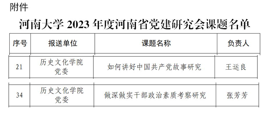 河南大学2023年度河南省党建研究会课题名单