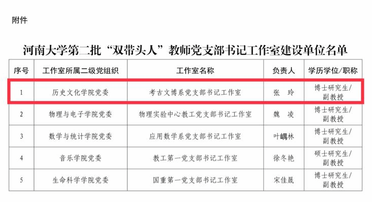 党委获批“全省党建工作标杆院系”培育创建单位,2020级硕士研究生王煜皓荣获河南省“大学生党员标兵”荣誉称号,考古文博系教师王运良主持的《如何讲好中国共产党故事研究》、行政党支部书记张芳芳主持的《做深做实干部政治素质考察研究》均入选河南大学2023年度河南省党建研究会课题名单,考古文博系党支部书记张玲获批河南大学第二批“双带头人”教师党支部书记工作室建设名单,90vs足球比分