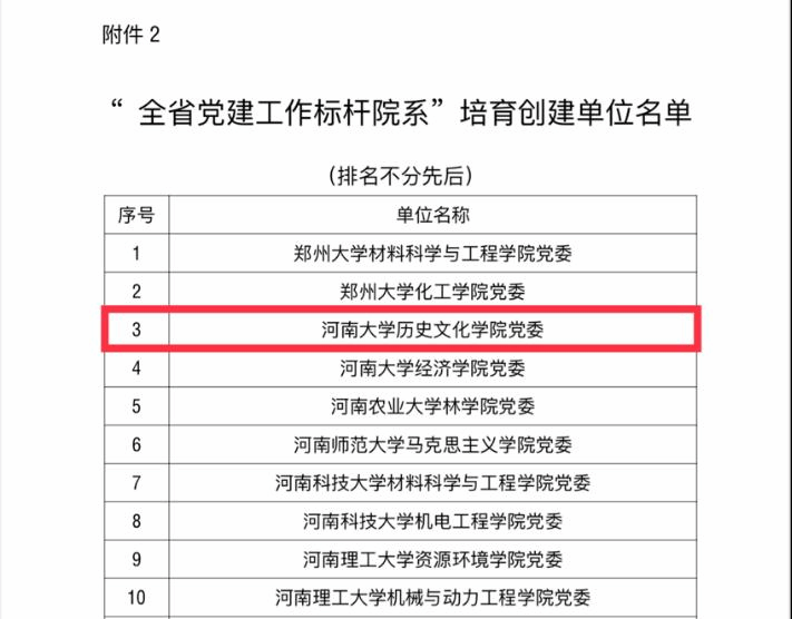 “全省党建工作标杆院系”培育创建单位名单