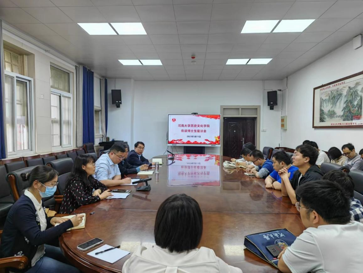 党委书记张占党,院长祁琛云,党委副书记周文凯,副院长李竞艳,研科办主任肖莹和高年级在读博士生参会。座谈会由副院长李竞艳主持。