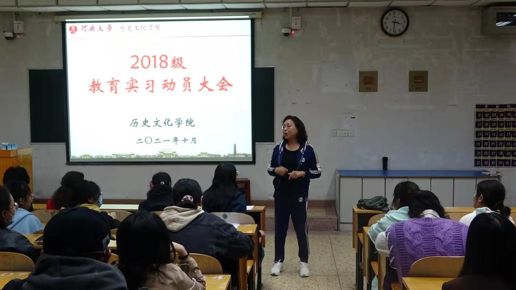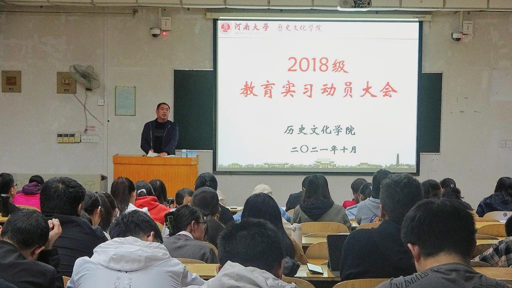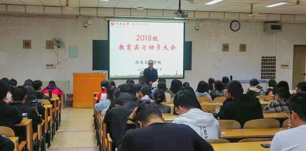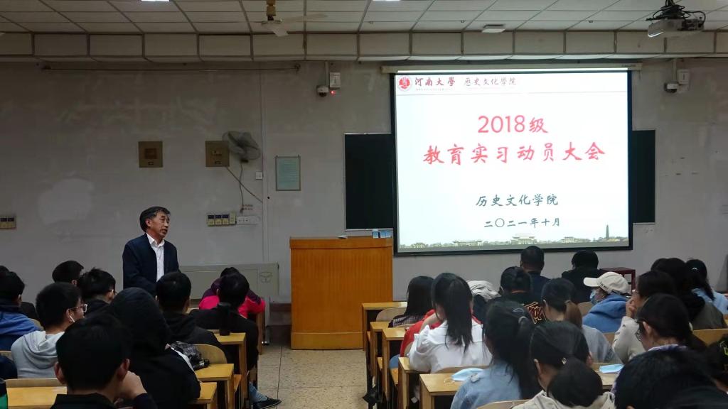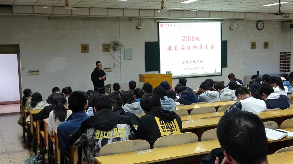 高度重视历史学专业的建设和发展,注重学思结合,努力推动教师教育课程学习和实践育人工作取得新成效。本次教育实习从开学初筹备至学生回讲、考核,累积时间18周,参与毕业生有130人、校内指导教师13人,分别到河南大学附属中学、金明中学、开封市第七中学等7所中学(部)进行实习。