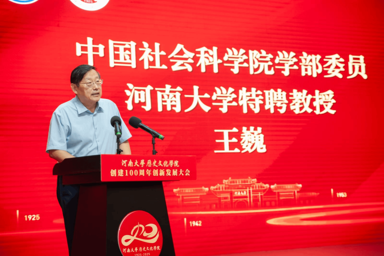 王巍教授以“新河大人”的身份讲述了自己加盟河南大学的原因,受聘后带领团队在中原大地上“解码文明”的经历。并表示未来将继续以“老考古”的热忱,与全院师生一道,持续深化“田野育人”模式,打造“中原文明研究”学术品牌,推动“文化遗产惠民”实践。